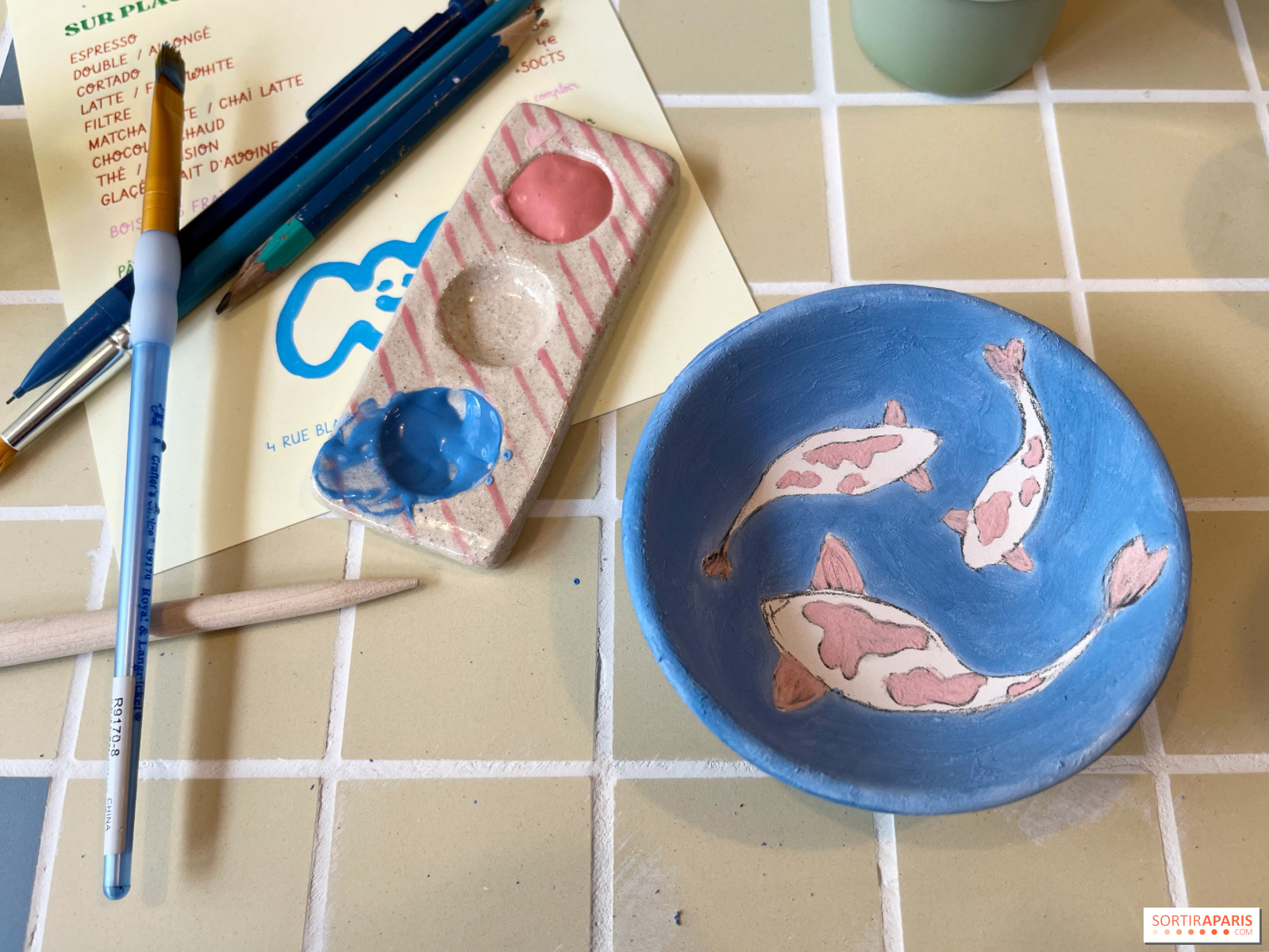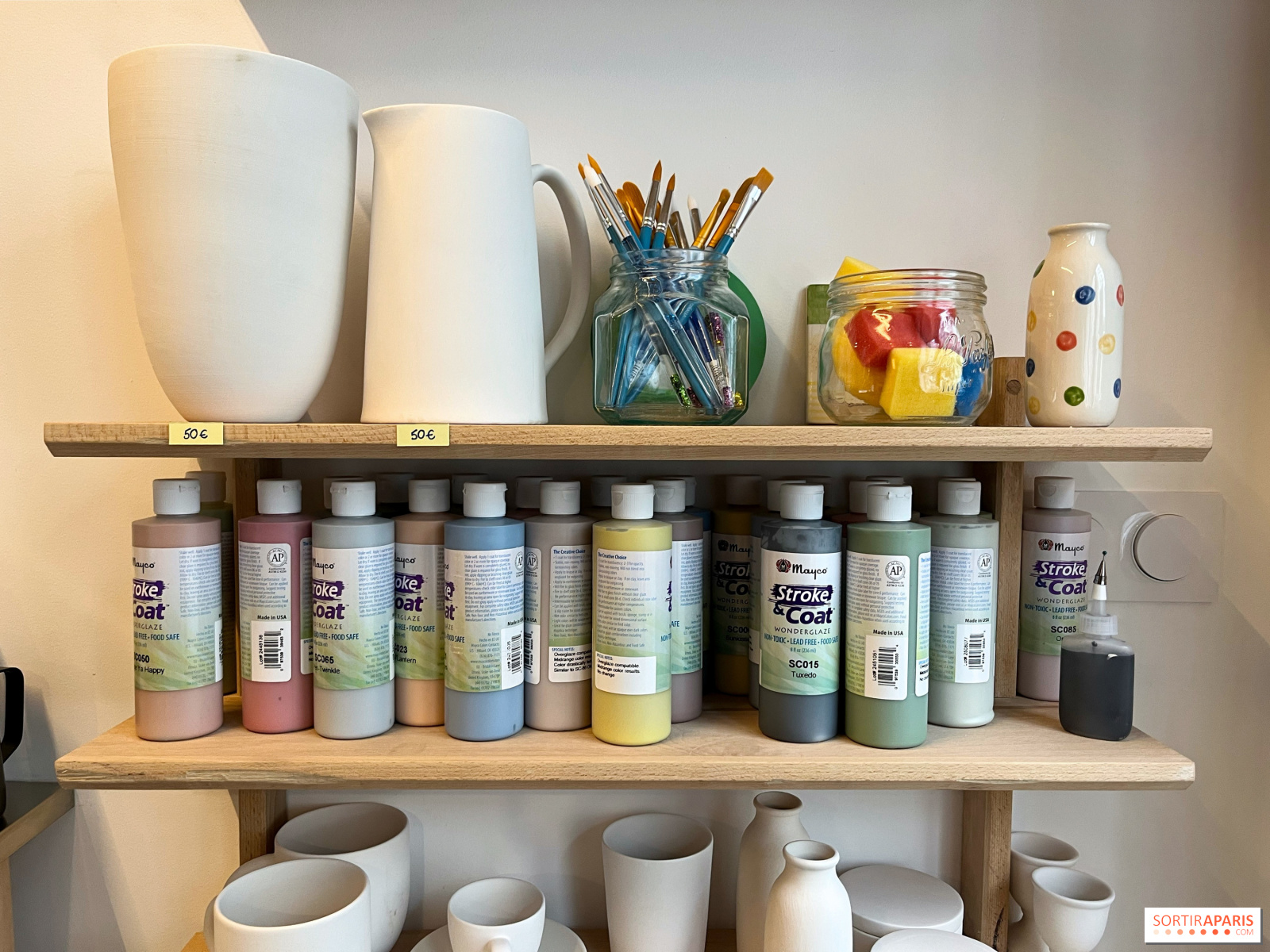 Незалежно від того, чи ви прийшли випити кави, взяти її з собою або просто посидіти тут, ви будете розпещені вибором, коли справа доходить до розпису керамічних виробів. Яйцеварки, чашки, кавові горнятка, миски або тарілки... на яких ви можете дати волю своїй творчості протягом двох годин (або більше, якщо прийдете вдень). Під час вашого візиту ви також можете безкоштовно скористатися наборами для самообслуговування, зокрема наборами для вишивання, картковими іграми та розмальовками.