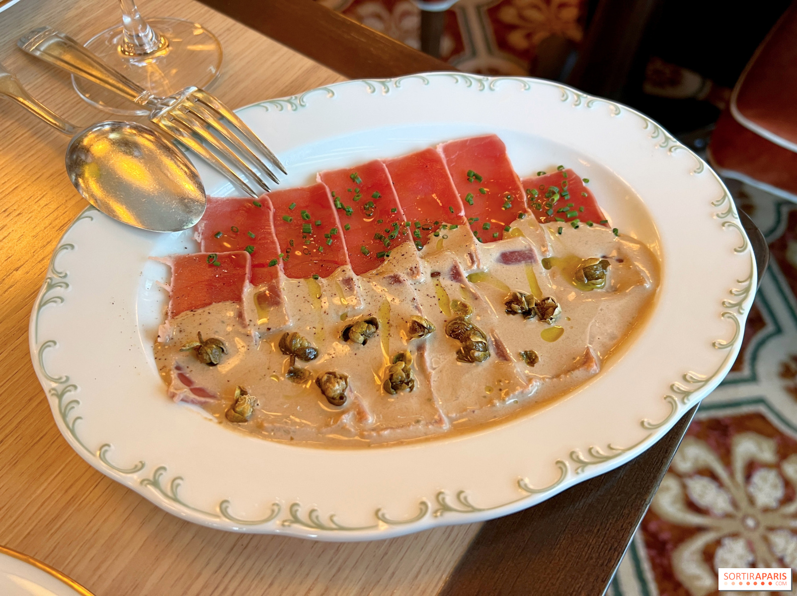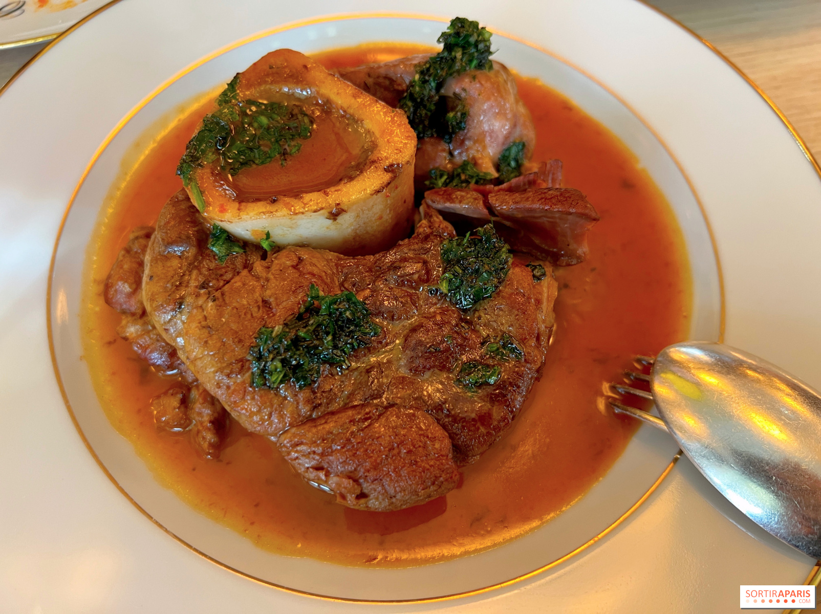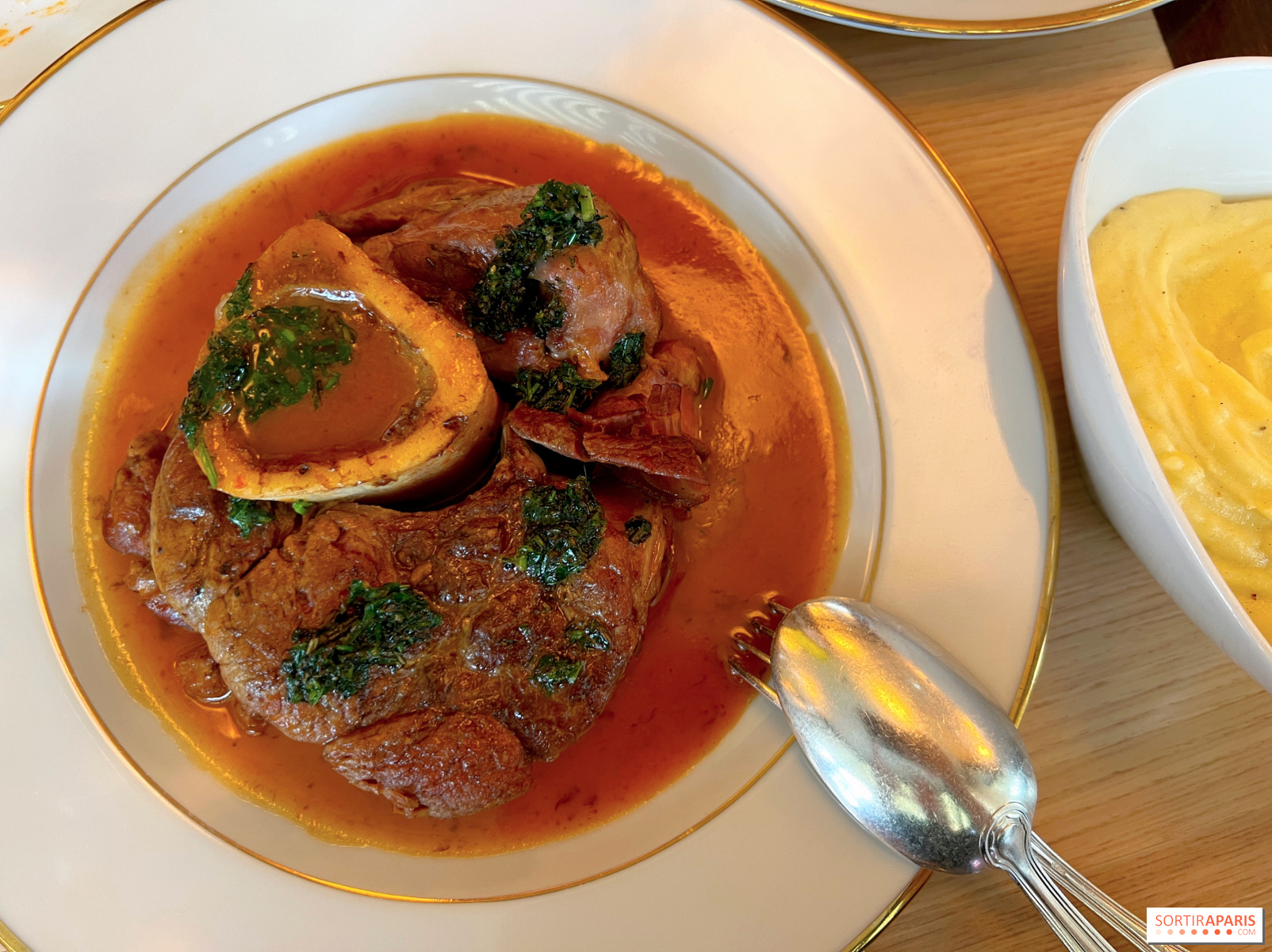 Ốc quà xào parmigiana (22€), mùa không phải mùa nhưng vẫn rất ấm lòng, những lát cá ngừ đỏ mỏng manh theo phong cách vitello tonnato (23€), mỳ ý và thịt viên (28€) như một bước sang bên phía bờ Tây của Đại Tây Dương, nơi ẩm thực Ý - Mỹ sôi động, hoặc thử ossobuco (32€), món thịt chân bò hầm được chế biến cực kỳ thành công, mềm mại, xương có tủy bò đầy đặn. Món nghiền khoai tây hơi bị thiếu độ dẻo, tiếc thật đấy.