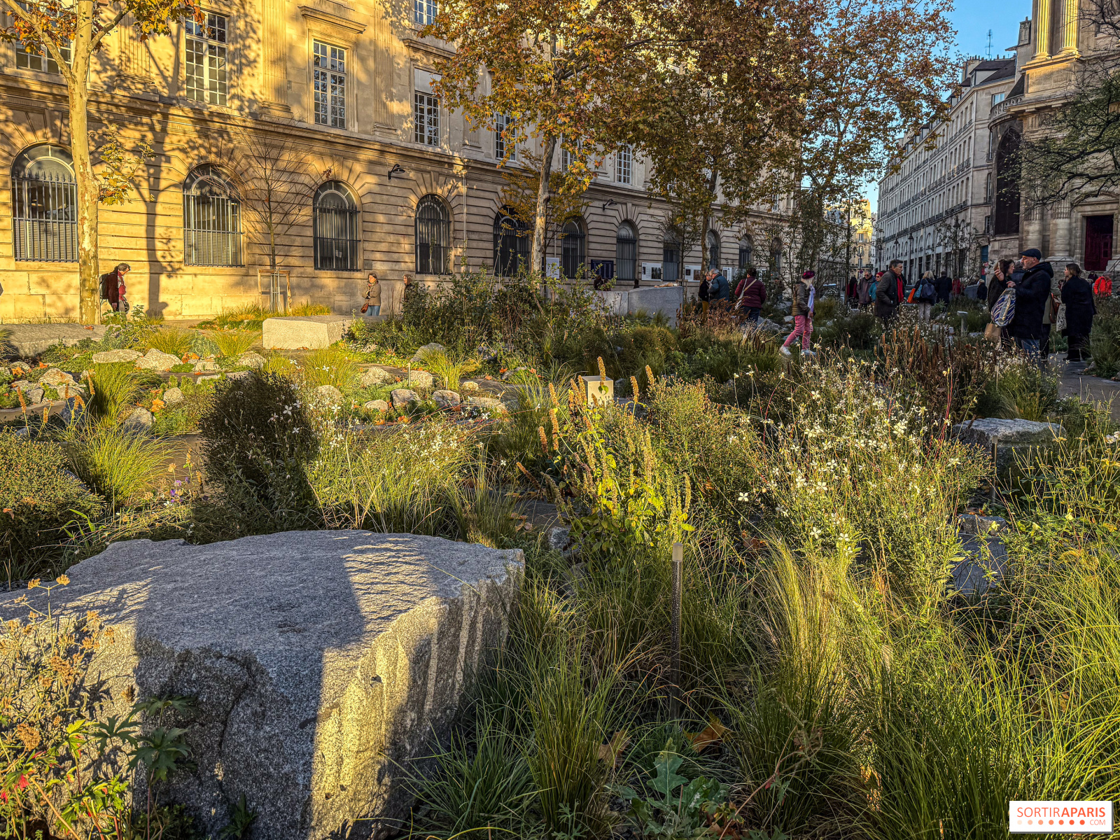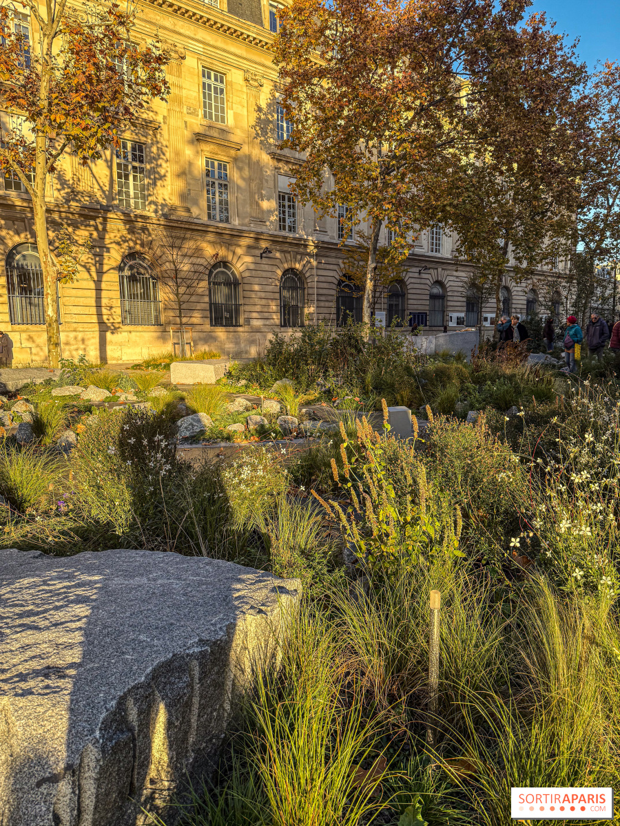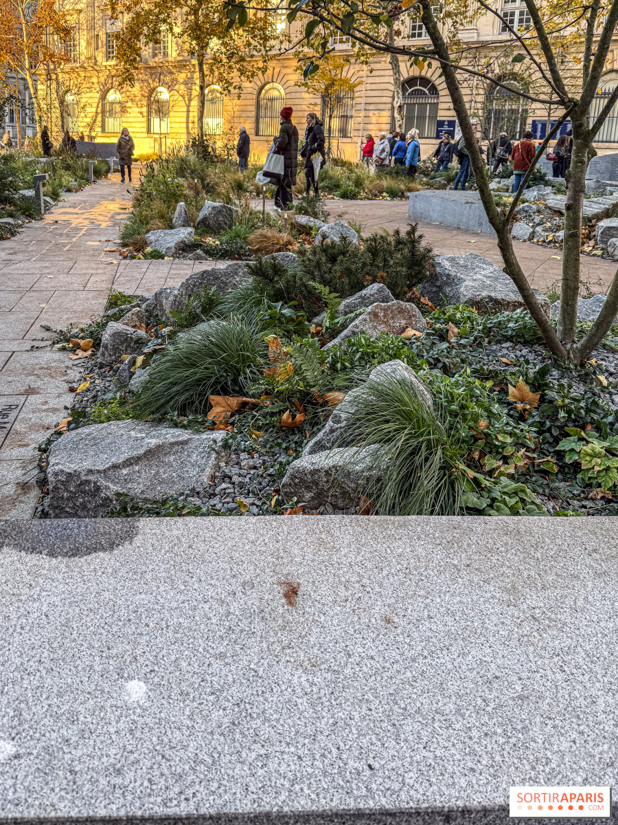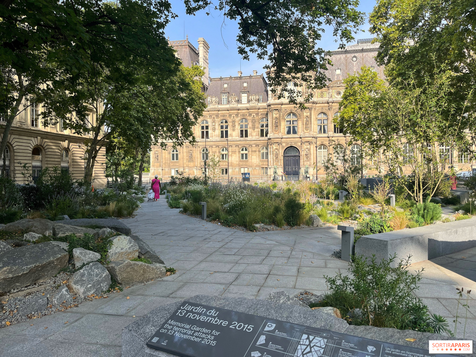 Cảnh quan của khu vườn gợi nhớ đến sáu địa điểm bị tấn công vào ngày 13 tháng 11 năm 2015: Stade de France, Carillon và Petit Cambodge, Bonne Bière và Casa Nostra, Belle Équipe, Comptoir Voltaire và Bataclan. Sáu khối đá granit nổi lên khỏi mặt đất để gợi nhớ những địa điểm này, trong khi bốn tấm bia xung quanh, khắc tên của các nạn nhân, phân định không gian. Trên mặt đất, các con đường nơi xảy ra các vụ tấn công được tái hiện, phân mảnh, để gợi nhớ thành phố bị xáo trộn trước khi trở lại là một nơi yên bình, thích hợp cho sự tĩnh lặng. Đá granit Brittany, một biến thể của đá lát đường Paris, đã được chọn vì ý nghĩa tượng trưng của nó, như nhà thiết kế cảnh quan Mathieu Gontiergiải thích với các đồng nghiệp của chúng tôi tại Le Figaro: "Ngày 13 tháng 11, chính là ngày mà đất Paris cũng bị tấn công", ông nói.