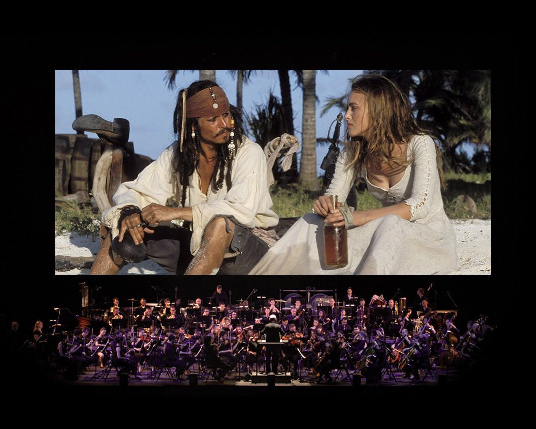 Trong hơn hai giờ rưỡi, 70 nhạc sĩ và ca sĩ của Yellow Socks Orchestra & Choir sẽ biểu diễn bản nhạc huyền thoại của Klaus Badelt, được giám sát bởi bậc thầy âm nhạc phim Hans Zimmer, hoàn toàn đồng bộ với phim chiếu bản gốc có phụ đề tiếng Pháp. Một trải nghiệm điện ảnh và âm nhạc hứa hẹn sẽ đưa bạn vào một cuộc phiêu lưu đầy mạo hiểm, nơi mỗi nốt nhạc sẽ đưa bạn vào thế giới của những tên cướp biển bị nguyền rủa.
