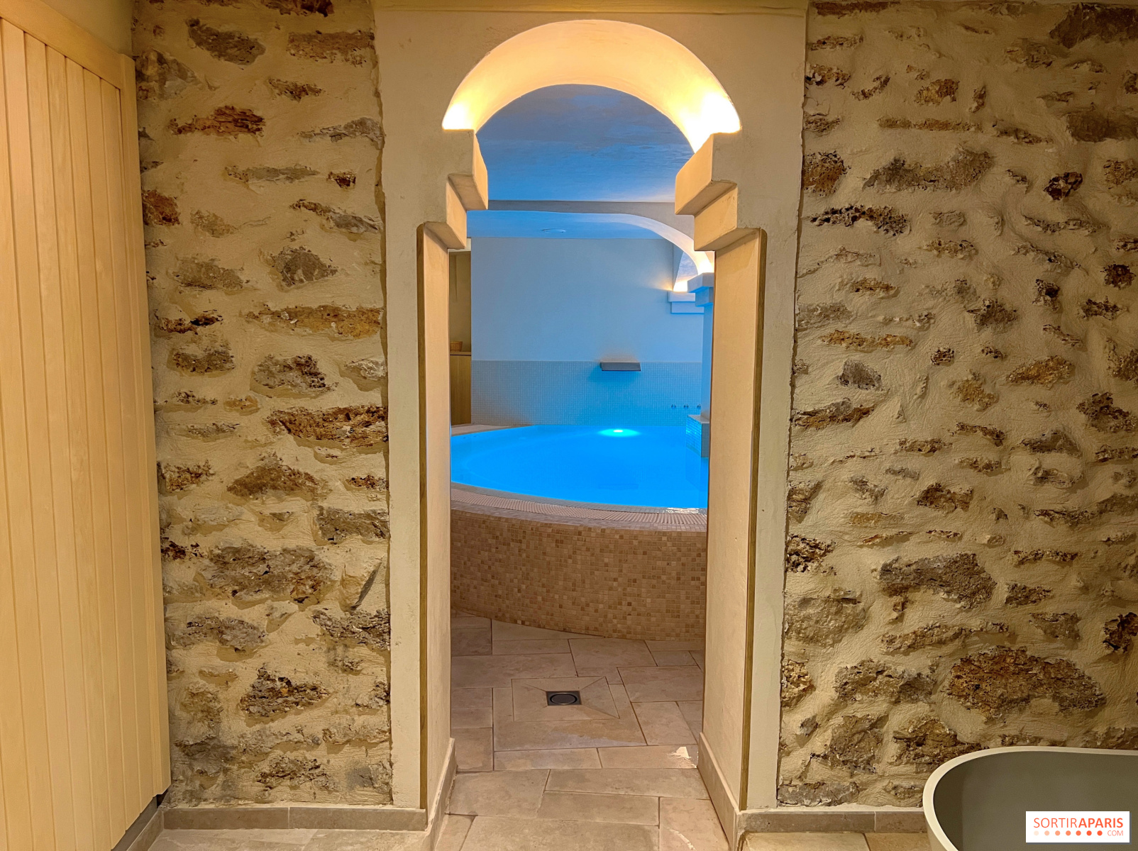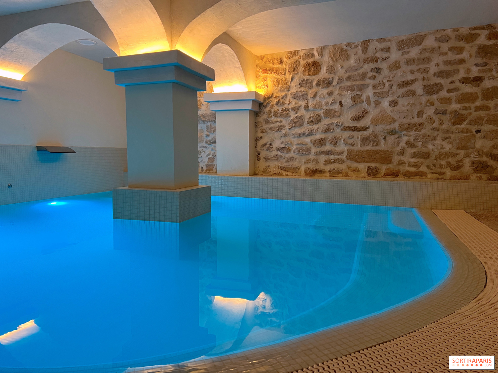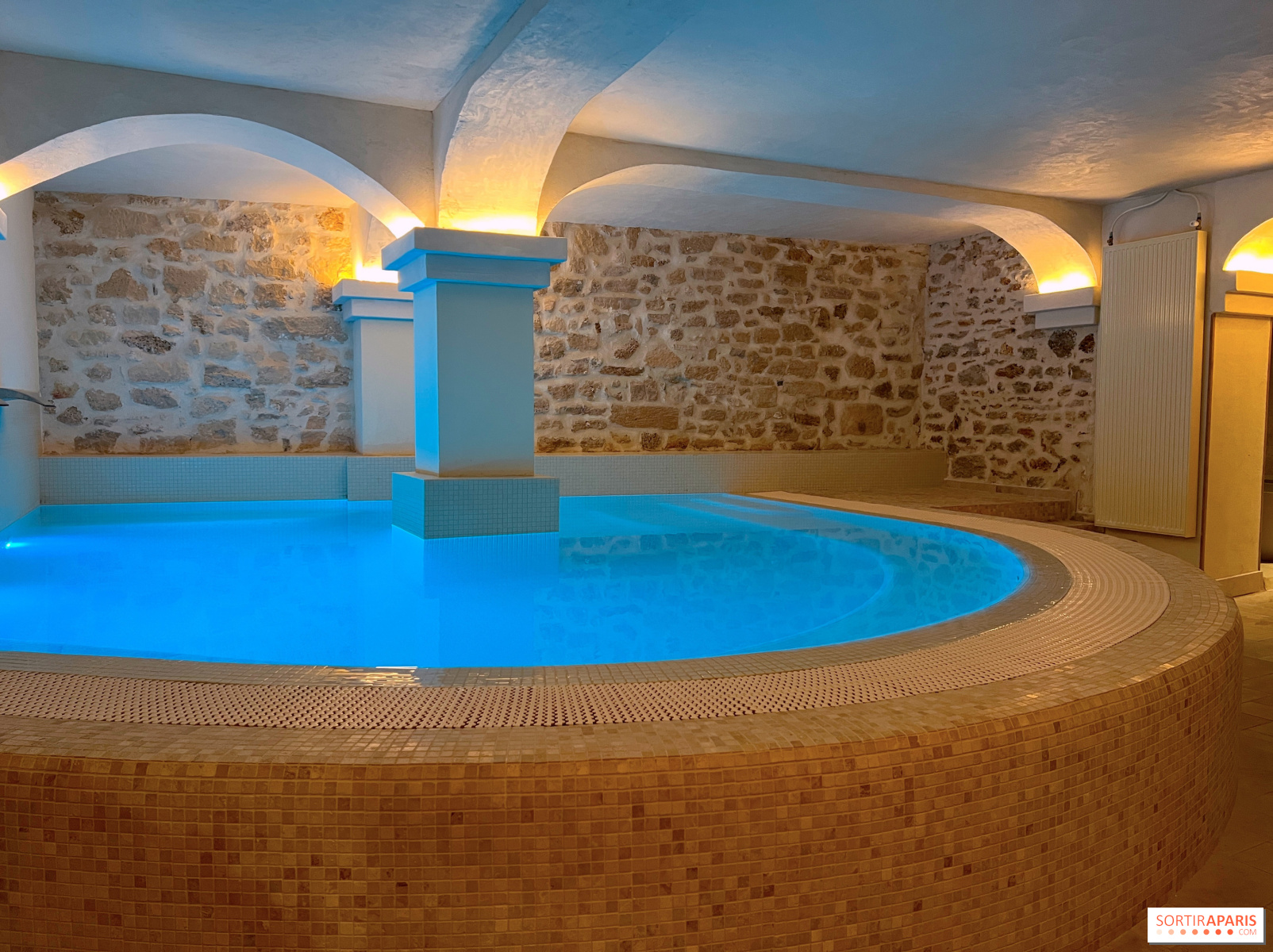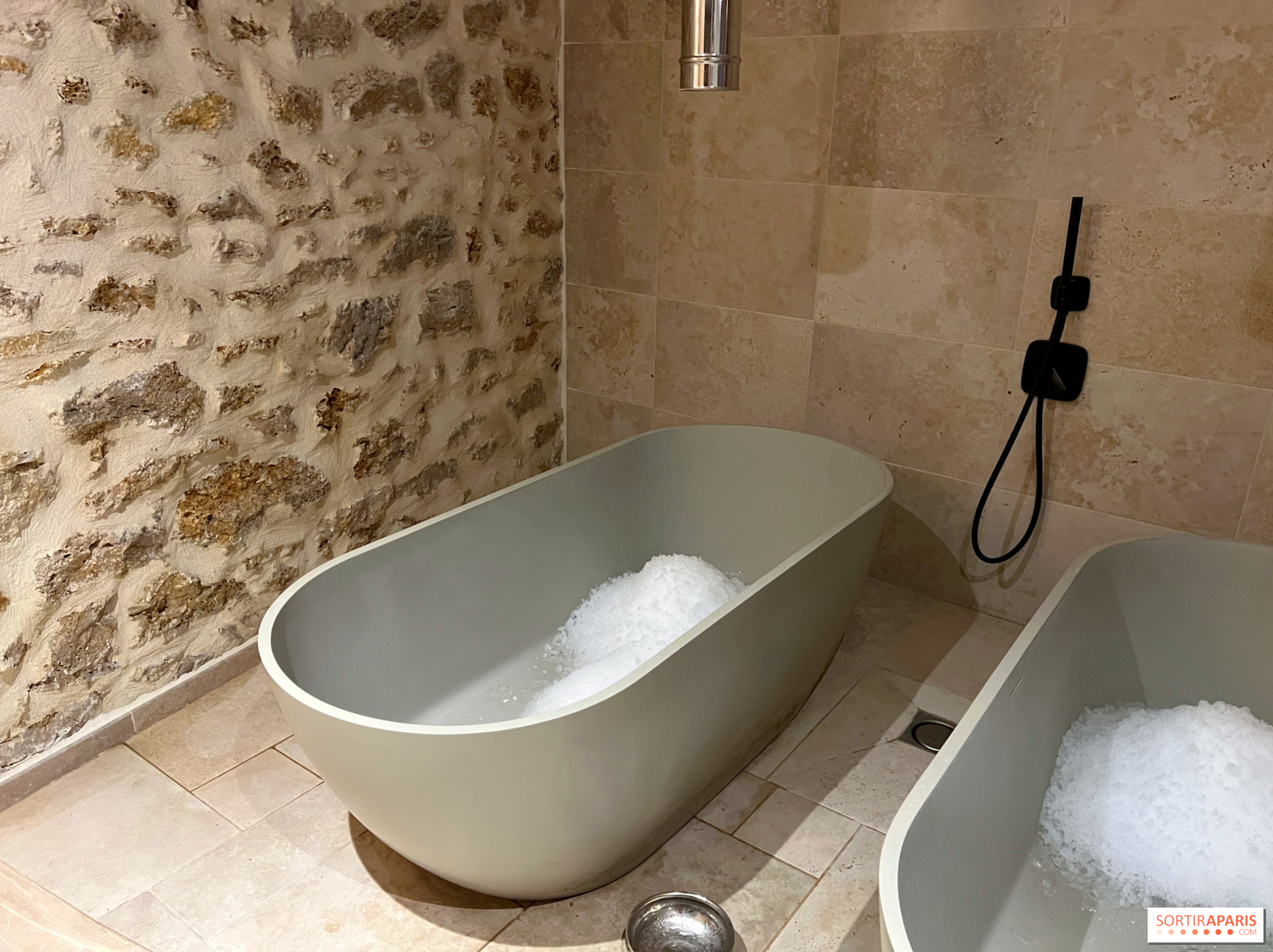 Hãy thử trải nghiệm và thậm chí còn hơn thế nữa bằng cách chà xát cơ thể với đá rơi liên tục trong hai bồn tắm; cảm giác thú vị đảm bảo! Sau đó, đã đến lúc đi bơi trong bể bơi có nhiệt độ khá ấm, có thể bật hoặc tắt một vài vòi phun nước, hoặc chỉ đơn giản là bơi vài vòng. Lúc này, nhân viên sẽ mang cho bạn nước chanh hoa cam.