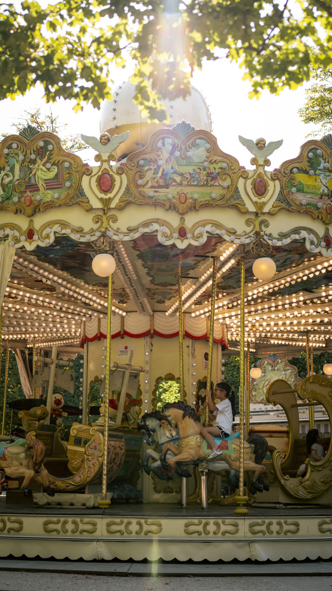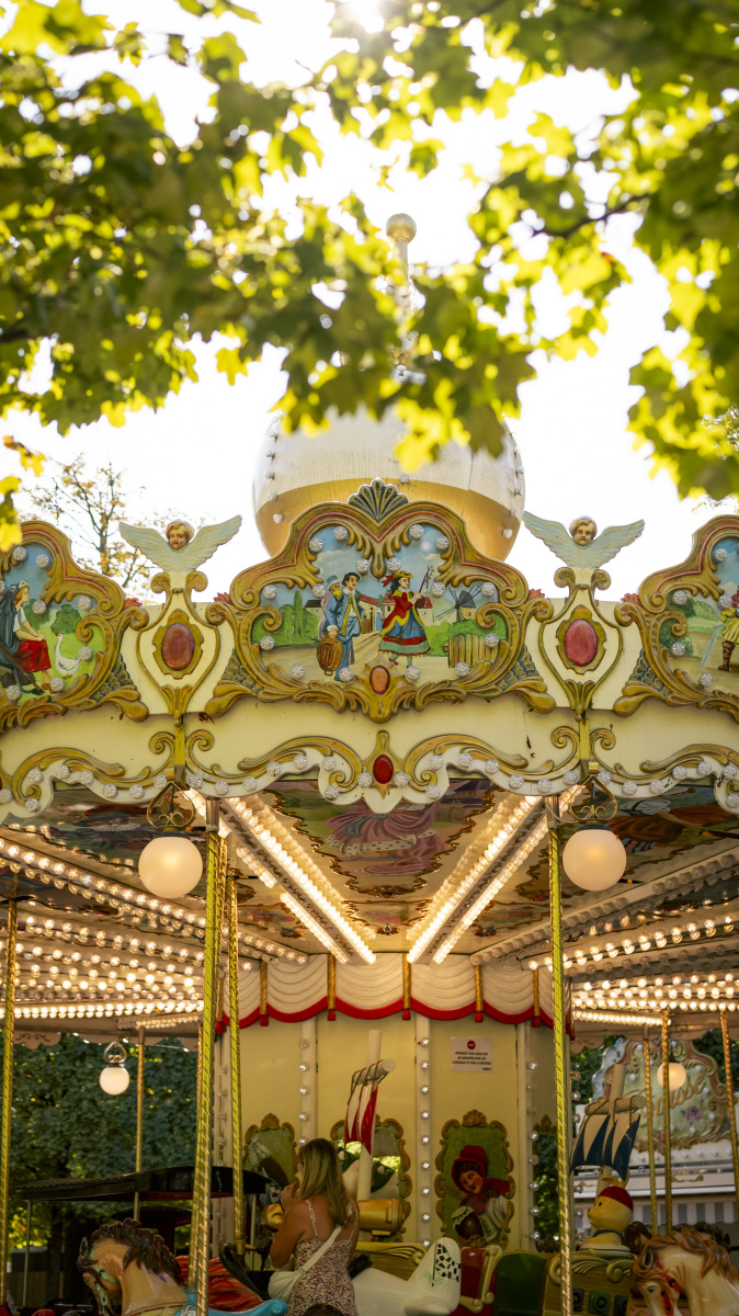 前往杜乐丽花园(Jardin des Tuileries),乘坐杜乐丽旋转木马(Carrousel des Tuileries),票价 3 欧元!