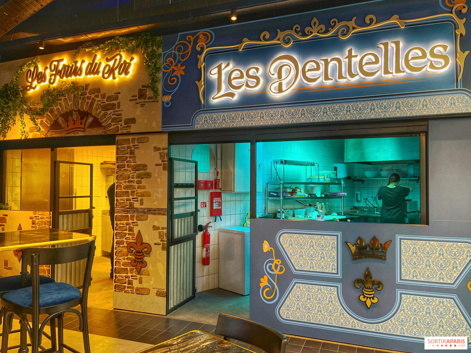 因为这里不仅仅是一个酒吧,还是一个小型美食广场,有四个地方可以点餐:Le Banquet 提供木板和小吃,还可以分享蜗牛吧;Les Fours du Roi提供自制披萨;Le Garden提供沙拉和三明治;Les Dentelles 提供烤饼和煎饼。