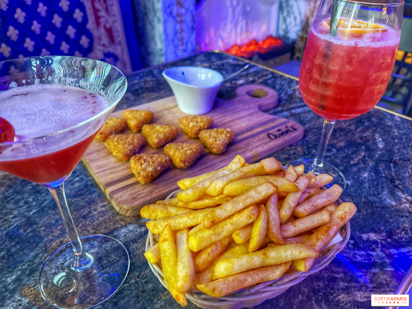 您可以坐在壁炉边的天鹅绒长椅上,也可以坐在宽阔的室外露台上或巨型屏幕前。至于鸡尾酒,当然有经典鸡尾酒,但最重要的是有十几种鸡尾酒,它们的名字都充满了皇室气息,如 La Favorite 或 Be My King,价格在 12 至 14 欧元之间,与巴黎的许多酒吧不同。