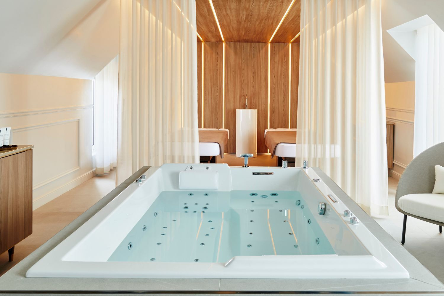 Enfin, le dernier étage dévoile le Lancaster Private Spa. Ce refuge offre une expérience unique et presque égoïste de privatisation totale, avec jacuzzi, hammam, tables de massage et une terrasse panoramique face à la tour Eiffel et au Sacré-Cœur.