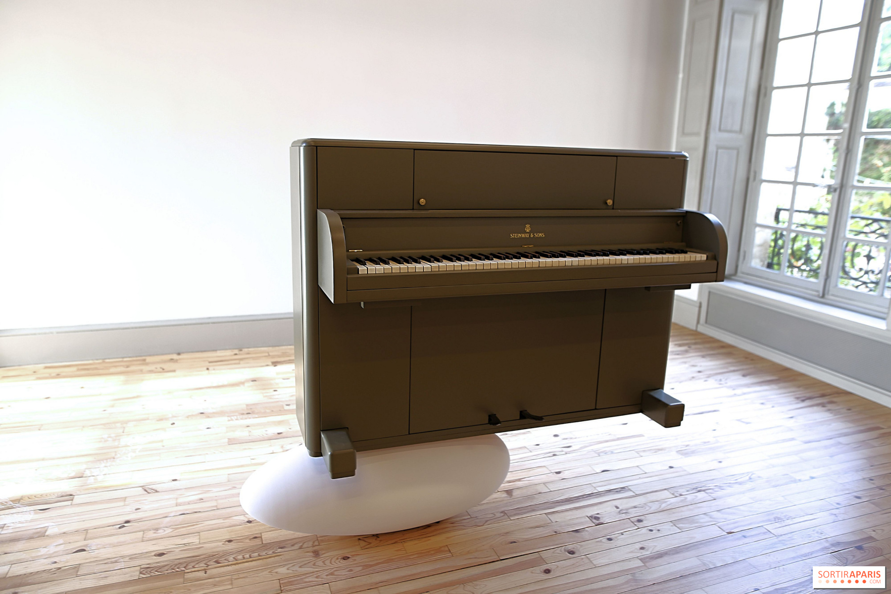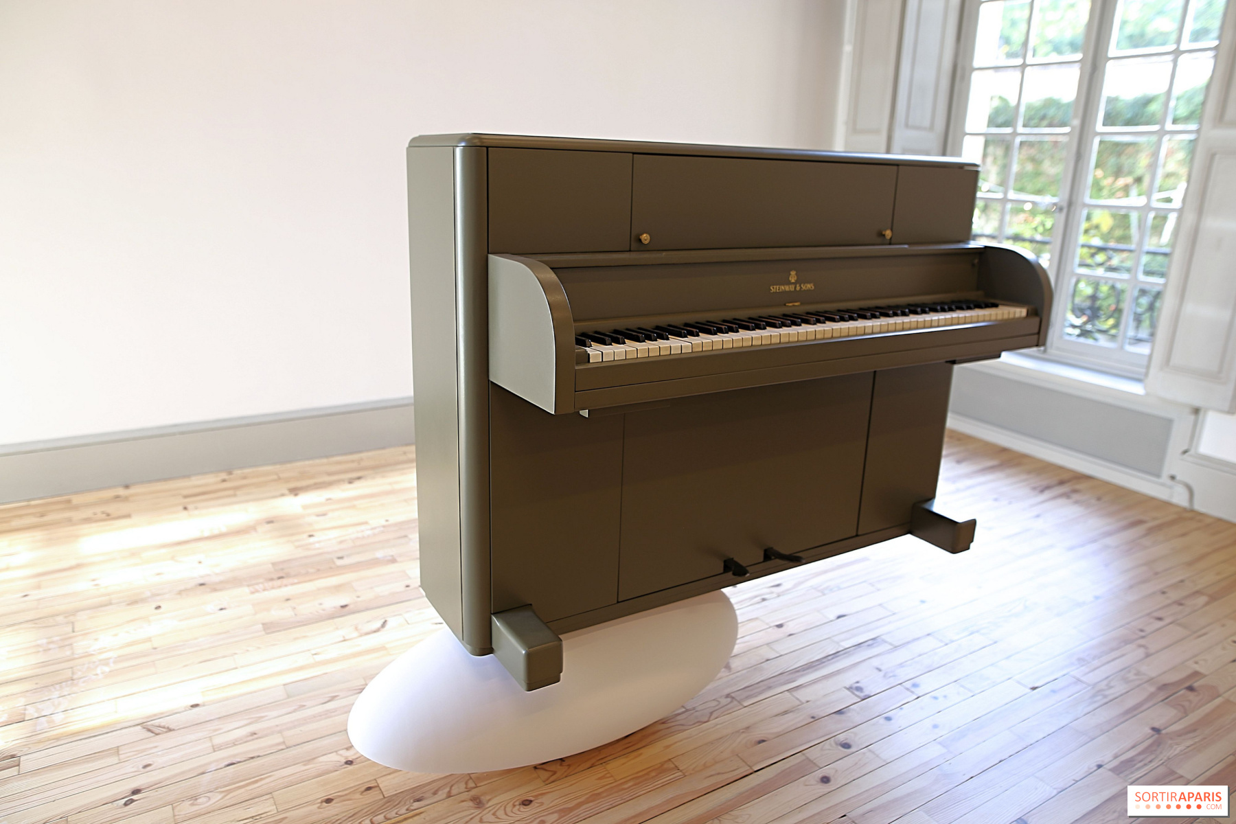 这件作品以其美感和独特性给人留下了深刻印象,但这件雕塑装置作品却隐藏着一段历史和一个漫长的研究项目。正如艺术家在媒体参观时解释的那样,"施坦威胜利立式钢琴"(1944 年)是由纽约施坦威父子公司设计的立式钢琴,具有非常特殊的用途。第二次世界大战期间,施坦威公司制造了 2000 架这样的钢琴,每架重 206 公斤,然后空投到欧洲,为那里的士兵提供心理慰藉。入口大厅展出的一些黑白照片见证了这一事件。可以看到士兵们抬着这些著名的"施坦威胜利垂直"钢琴。
