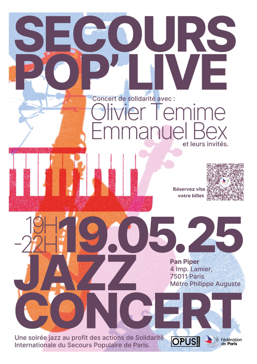 时隔五年之后,"Secours Pop' Live" 团结爵士音乐会 将 于 5 月 19 日(星期一) 再次隆重登场 。在第六届音乐会上,钢琴家兼编曲家 Emmanuel Bex 和萨克斯风演奏家 Olivier Temime 将在 Pan Piper 举办这场别开生面的音乐会 。在众多嘉宾的陪伴下,这两位著名音乐家将带来一个充满活力和慷慨的即兴之夜。
